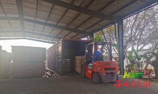 首批“零添加”FSC橡胶木刨光锯材装车发运。海垦林产集团供图
