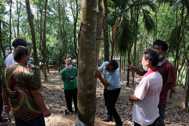 不仅是东太分公司,今年物候条件较差,在一定程度上推迟了海南橡胶部分基地分公司的开割进程。为此,各基地分公司多措并举,继续做好橡胶“两病”防治工作,为今年橡胶高产、稳产打下坚实基础。此外,海南橡胶基地管理部还组织督导组,分赴各基地分公司提供防病物资,并邀请了相关专家到橡胶林段进行技术指导。