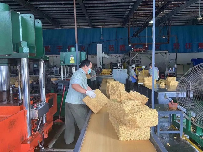 金隆橡胶加工分公司包装车间正抓紧全乳胶的产品包装生产。