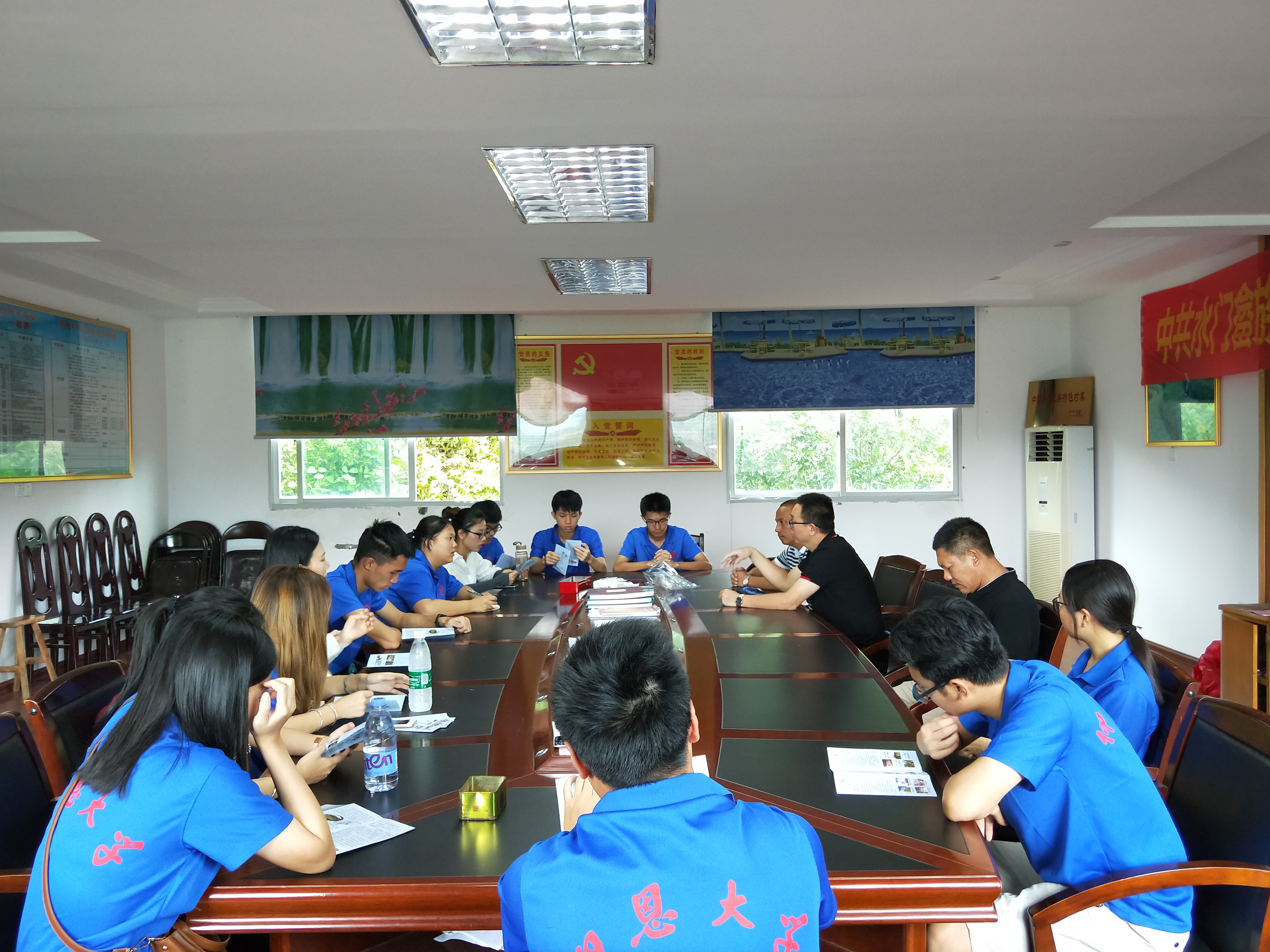 (图为实践队队员与副书记雷健及当地干部进行交流)