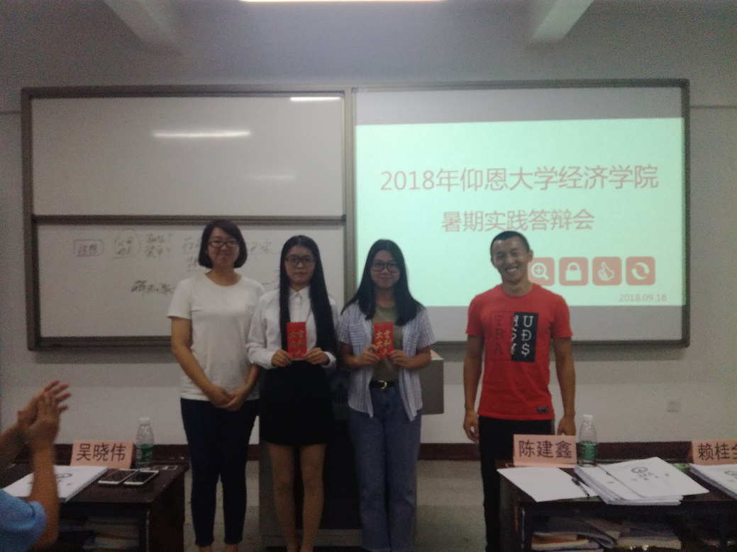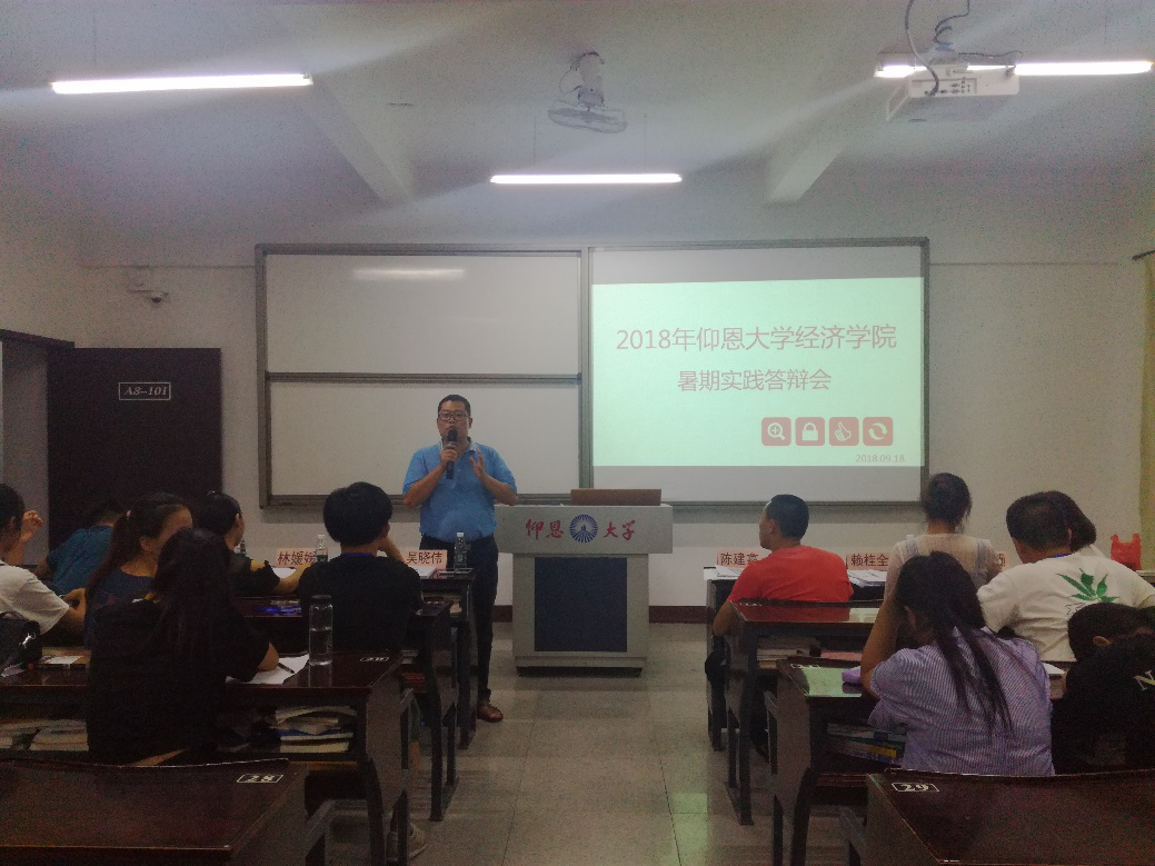 9月18日晚7时,新葡的京集团8814检测站2018年度暑期社会实践活动答辩会于仰恩楼A3-101室顺利举办。出席并担任本次大会评委的有学院党总支书记副院长吴晓伟、学院团委书记陈建鑫、学院学生会指导老师林珊珊、学院就业指导工作坊指导老师赖桂全、经贸系党总支部书记林晓富及学院学务秘书林媛媛。