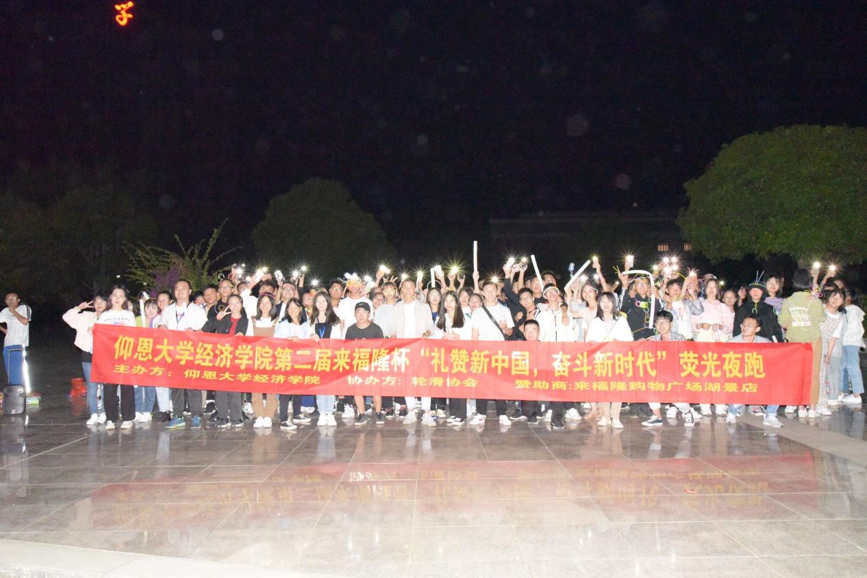 (集体合影留念) 此次“荧光夜跑”活动,经院学子以高涨的热情展现了新中国青年的风采,在今后的学习生活中将以昂扬的姿态为祖国的新时代不断奋斗。(新葡的京集团8814检测站新闻中心/文 新葡的京集团8814检测站团委宣传部/图)