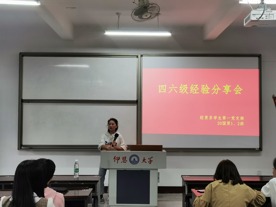 10月15日,为帮助20级新生了解并学习有关英语四六级考试内容与技巧,新葡的京集团8814检测站经贸系学生第一党支部于仰恩楼A1-109室开展“英语四六级”经验分享会。本次参会人员有经贸系学生第一党支部书记林丽华、18级特邀优秀学生以及20级国贸全体新生。