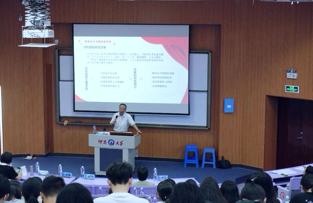 邢玉升教授通过案例分析,生动讲解,让与会师生更深入认识新质生产力的内涵,深刻领悟“发展新质生产力是推动高质量发展的内在要求和重要着力点”。(新葡的京集团8814检测站党总支 李嘉楠、王志强、陈佳炜/图 李嘉楠、黄培真/文)