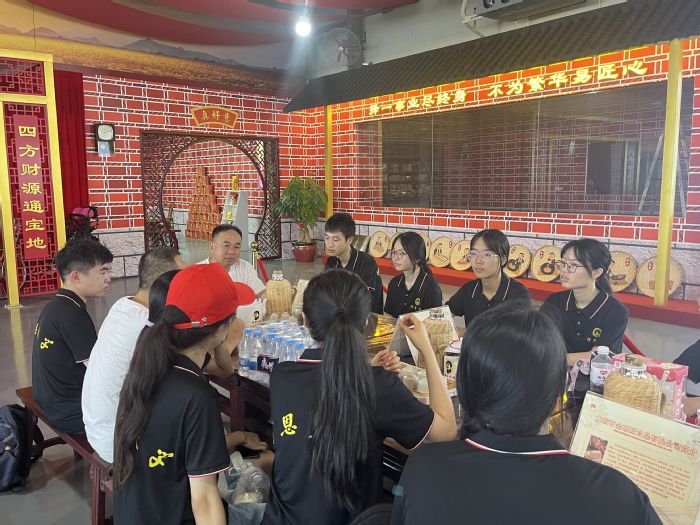 非遗传承,贡糖飘香。7月16日,新葡的京集团8814检测站“遇水叠桥”暑期实践队成员前往漳州市龙海区白水镇金旺旺食品有限公司继续开展对贡糖文化的深入调研活动。实践队成员与白水贡糖第五代传承人陈永川先生见面并展开座谈会,在陈永川先生身上,成员们感受到了老一辈非遗物质文化传承人丰富的非遗贡糖文化专业知识储备和坚定的理想信念,成员们十分动容,积极提问,各抒己见,现场讨论氛围浓厚。会后陈永川先生与成员拍照留念。通过这次座谈会,进一步加深成员们对促进非遗贡糖传承势在必行的决心。