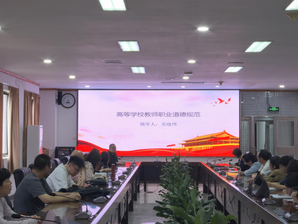 活动一开始,吴晓伟书记便强调了此次学习活动的重要性和紧迫性。他指出,在新时代背景下,高校教师肩负着培养德才兼备、担当民族复兴大任的青年才俊的重任,而教师自身的职业道德素养则是完成这一重任的关键基石。全体教职工需以此次学习为契机,深刻领会《高等学校教师职业道德规范》的内涵要义,将其内化于心、外化于行,切实成为学生为学、为人的榜样标杆。