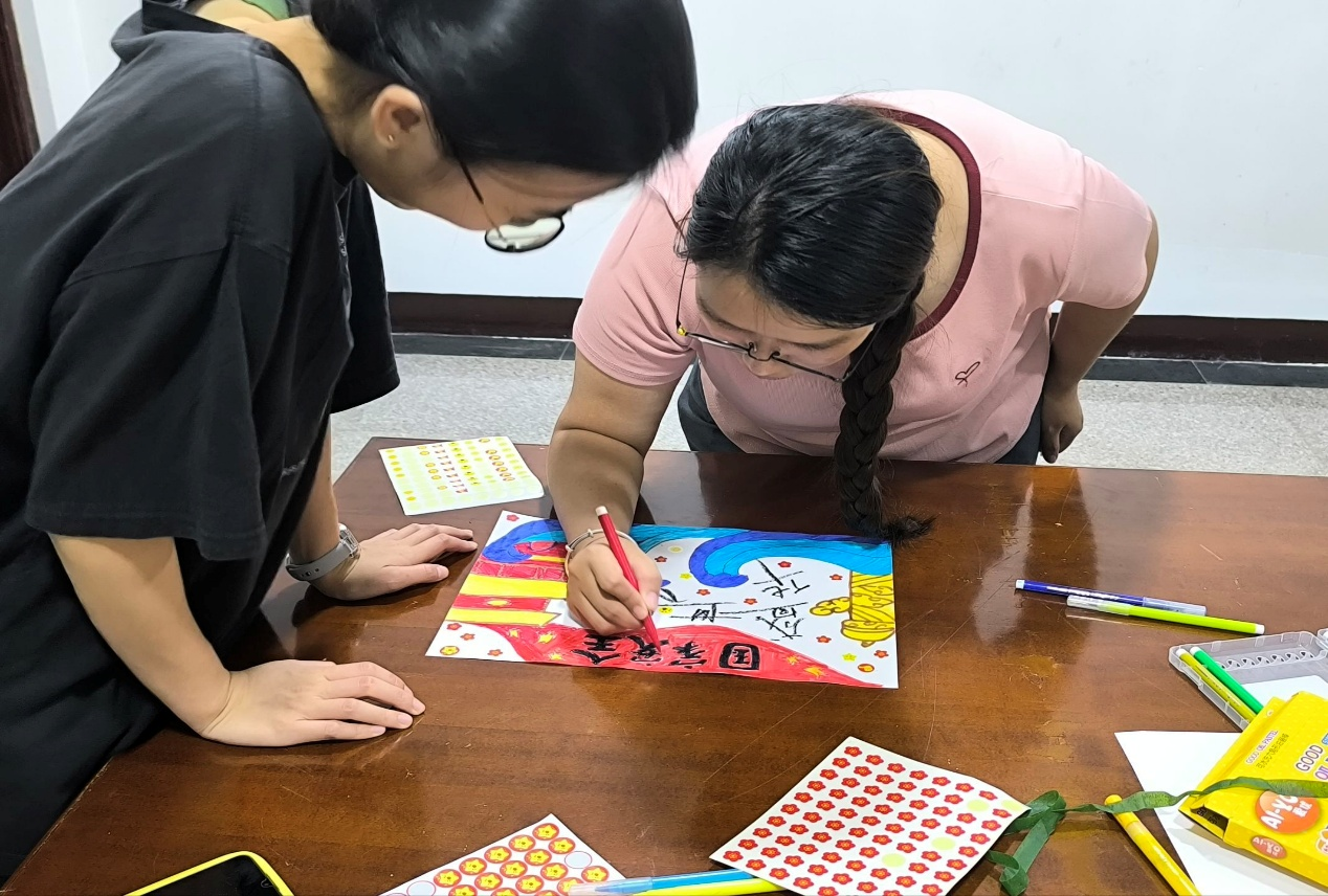活动中,党员和积极分子们围绕 “阅兵精神” 以手抄报形式展开创作,有的成员在手抄报上用鲜艳的色彩绘出五星红旗,搭配 “我爱你中国” 的字样,真挚表达对祖国的热爱;有的融入火箭、飞机等元素,展现祖国科技事业的蓬勃发展,还有 “精忠报国”“国家安全,共护共享” 等文字,传递出对家国责任的担当与守护国家安全的信念。创作过程中,大家时而专注描绘,时而轻声讨论如何让画面更生动、主题更鲜明。活动尾声,支部以 “抗战精神与阅兵精神的时代共鸣” 展示手抄报并传递感悟。有人指着手抄报上的内容,分享对 “从浴血奋战到大国风范,初心不变” 的理解,有的讲述创作时的思考,爱国意识在手抄报的展示与感悟分享中愈发强烈。