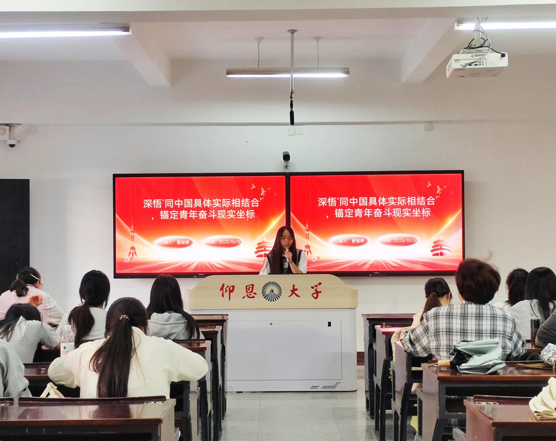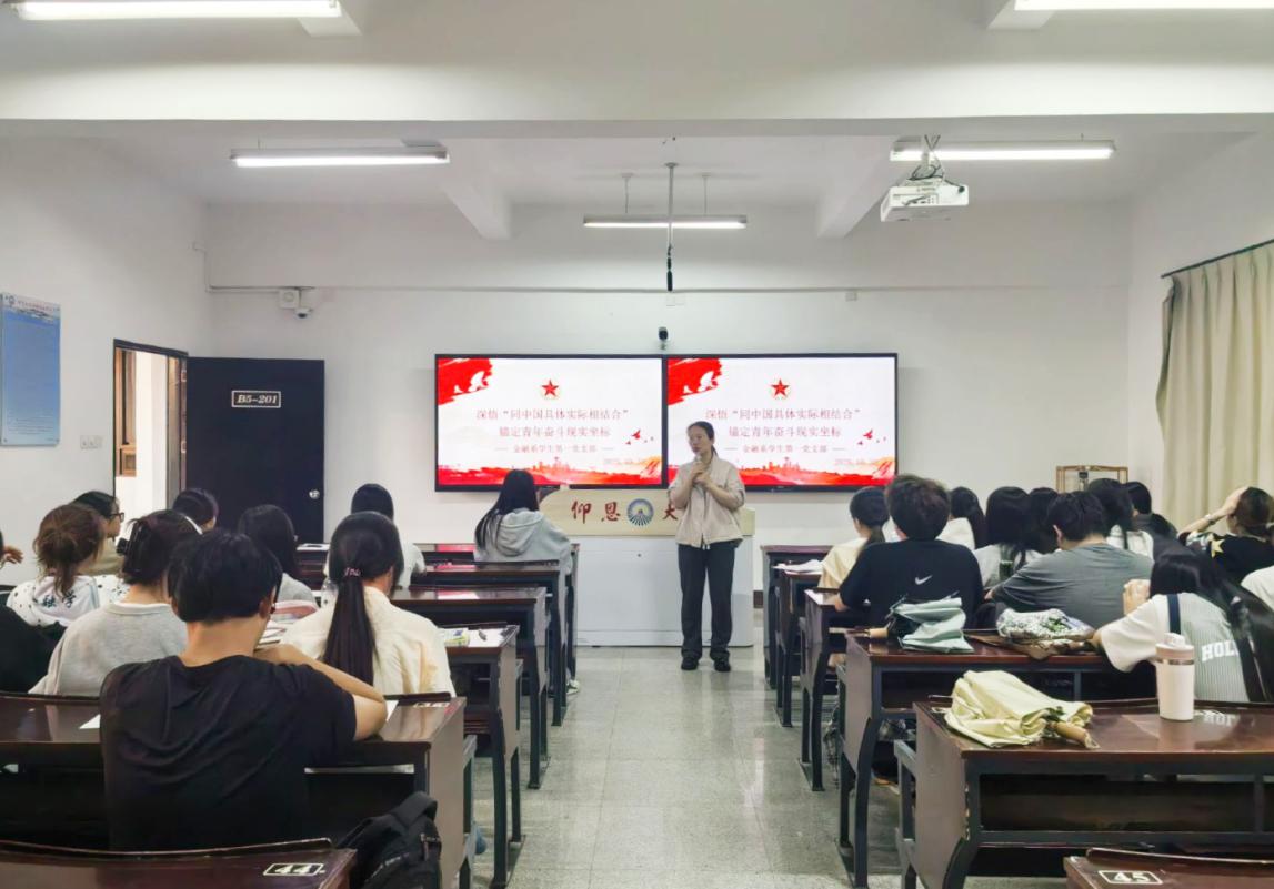 为引导党员及积极分子深刻领会“同中国具体实际相结合”的核心要义,锚定青年成长与时代需求的契合点,2025年10月30日下午16:00,新葡的京集团8814检测站金融系学生第一党支部在仰恩楼B5-201教室召开“深悟‘同中国具体实际相结合’,锚定青年奋斗现实坐标”专题学习会。支部书记何丽玲老师、支部全体学生党员、各班入党积极分子参加了此次会议。