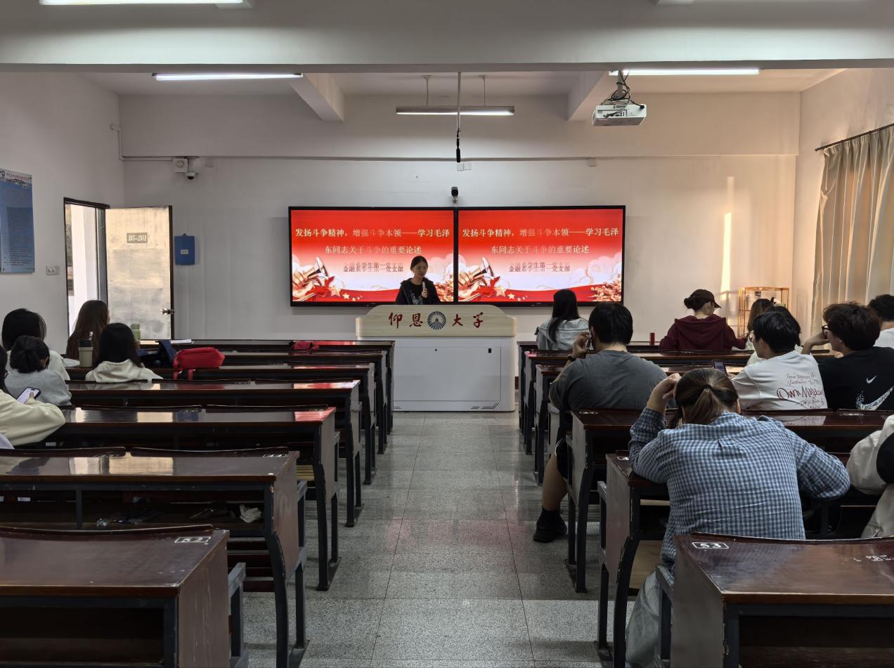 为引导同学们深刻领会“毛泽东同志关于斗争论述”的精髓,共同感悟斗争精神的时代内涵,2025年12月1日下午16:00,新葡的京集团8814检测站金融系学生第一党支部在仰恩楼B5-201组织开展“发扬斗争精神,增强斗争本领”学习毛泽东同志关于斗争的重要论述的主题学习会,支部全体党员及各班入党积极分子参加了此次学习会。