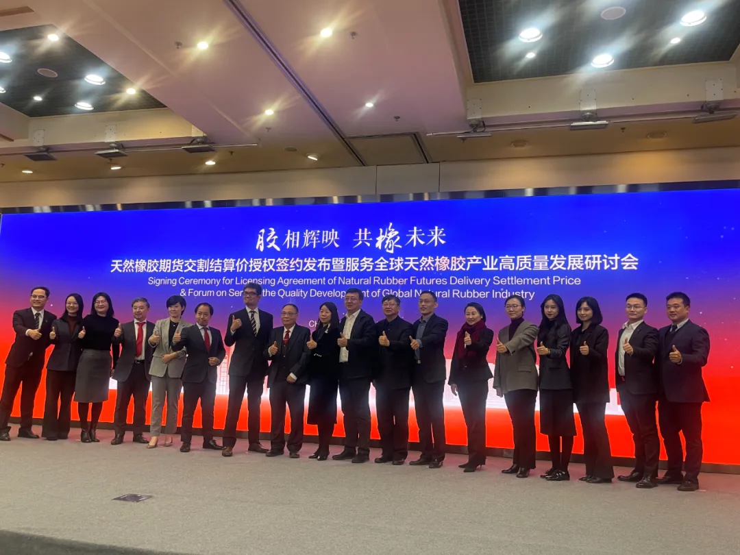 1月15日,上海期货交易所与大阪交易所在上海联合举办天然橡胶期货交割结算价授权签约发布暨服务全球天然橡胶产业高质量发展研讨会。