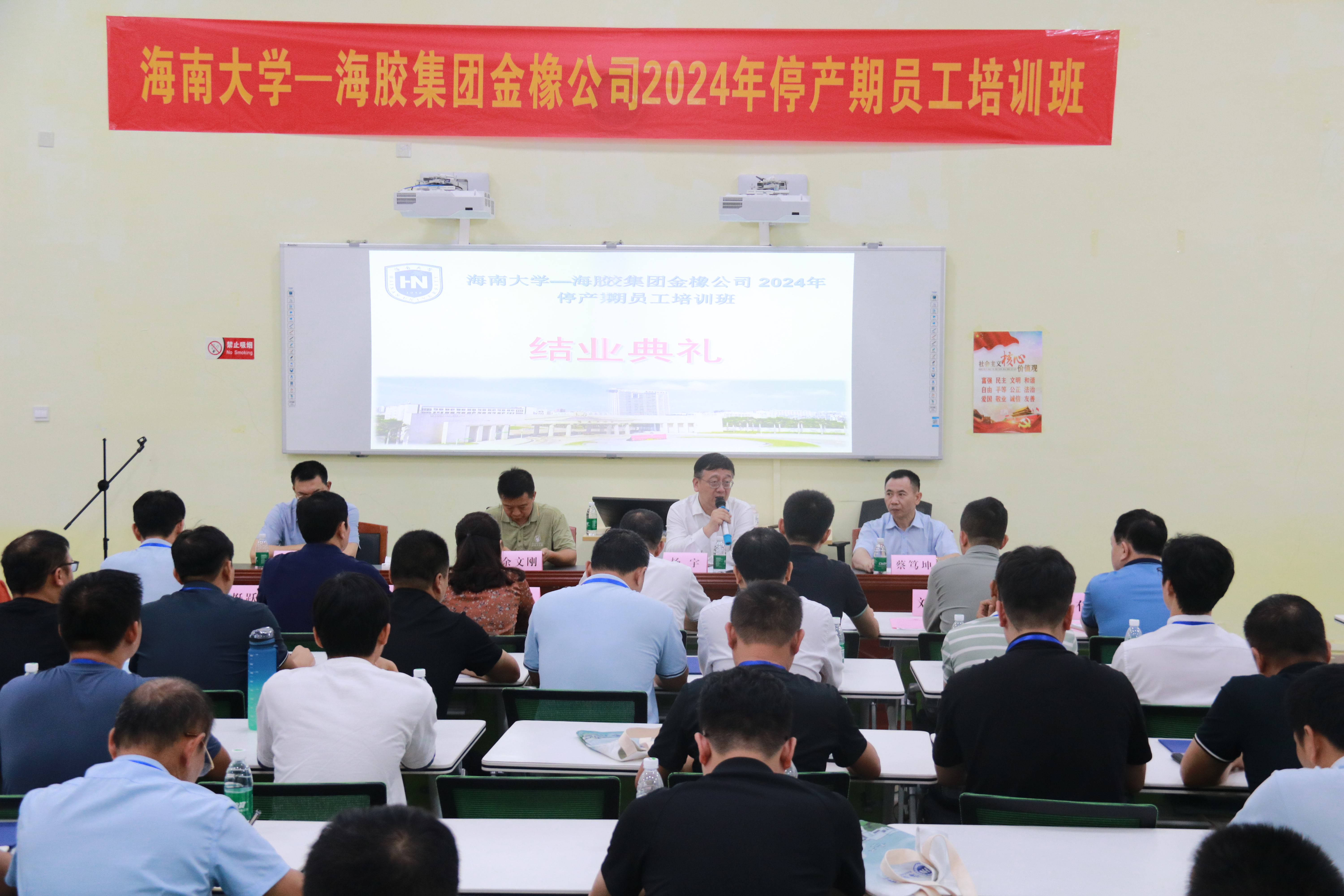 3月29日下午,海南橡胶金橡公司2024年停产期员工培训班结业典礼在海南大学儋州校区圆满举行