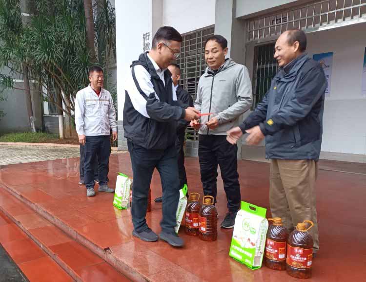 1月26日下午, 海南橡胶党委委员、副总经理,金橡公司党委书记、董事长杨宇,深入金星橡胶加工分公司慰问3名困难党员。